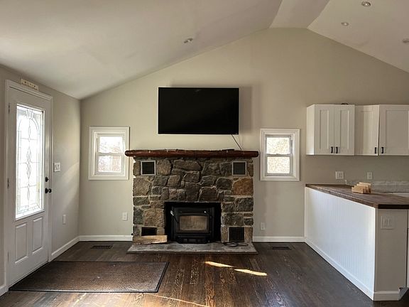 Renovated in 2022 - Hardwood Floors, open concept, wood burning stove insert. Large deck accessible from the master bedroom. Enjoy the lake and playground in warmer months. Great commuter location