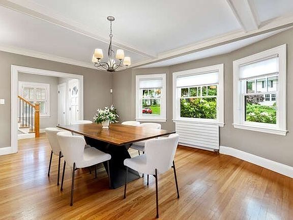 - Features: Beamed Ceilings, Closet/Cabinets - Custom Built, Flooring - Hardwood, Dining Area, Countertops - Stone/Granite/Solid, Kitchen Island, Chair Rail, Recessed Lighting, Remodeled, Lighting - Pendant, Beadboard, Crown Molding, Decorative Molding