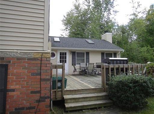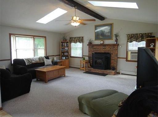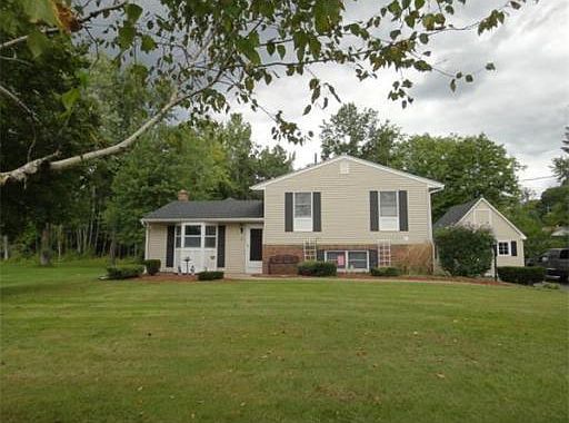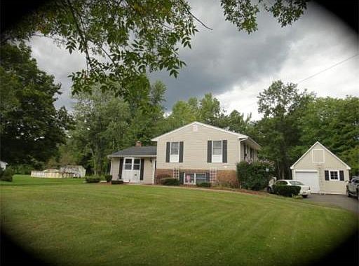 Room to roam! This split level has it all,spacious open floor plan,boast a huge familyrm w/ cathedral ceiling, skylights,brick fireplace w/pellet stove, which opens up to a fantastic kit,with a generous sized breakfast bar. Dinrm.w/ oak hardwood floor, large bedrooms with plenty of closet space with a blend of oak hardwood flooring and carpet.Exterior has a fantasic sized deck, and there is an above ground pool carriage garage with loft for storage, all situated on over an acre of privacy. What a great home for entertaining, come take a peek!
