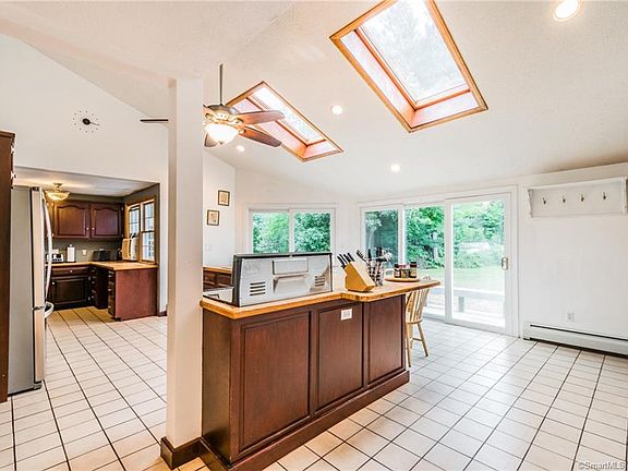 Unbelievable find in Farmington! 5 Bedroom colonial on nearly a half acre level lot ready for you to move right in. Main floor features a large tiled, eat in island kitchen with multiple sliders and skylights for abundant natural light, living room with fireplace and hardwood floors two bedrooms and a full bathroom. Upstairs enjoy your master suite with walk in closet, jack and jill bathroom with separate jacuzzi tub and stand alone shower, an additional bedroom plus the 5th bedroom/den. In the basement you will find a huge finished family room featuring dri-core subflooring with it's own half bath, a laundry room with wash basin and a separate utility and storage area. The essentials are all here, Peerless Boiler, Thermaflow Everhot 70 gallon glass lined tank water heater, roof is 10 years old, driveway is 11 years old, pave stone walk way to breezeway entry, and more. The rear features a fenced in yard, composite deck set up for entertaining, and energy use is off set by a Tesla Solar System. Steps from Lake Garda and an easy drive to dining and shopping. Call today for details