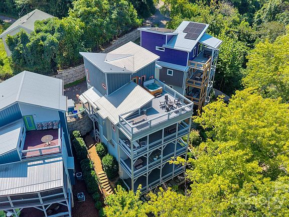 Perched between canopy and city, just steps from downtown Asheville’s cultural core, resides this striking modern “birdhouse” - ideal for professionals, investors, or “house hackers” who are seeking convenience, walkability, and/or profit. With three primary suites, the opportunities for cohabitation are abundant. The open concept main and upper level flow with light and volume - while the lower two levels are ready to become a second apartment with the simple addition of a kitchenette and exterior staircase. A starry evening calls for a hot tub soak, followed by a fire on the upper deck. City living at its best with enough outdoor deck space for the perfect potted plant oasis or create a garden to line the gently sloped backyard. The basement level has epoxy-lined floors ready for a game room or urban workshop for a bike collection or other hobbies. Furniture can convey. There is truly nothing like it on the market right now!