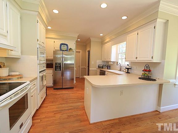 Beautiful SW Durham traditional home on .71 acre cul-de-sac lot! Open living/family room w/ fireplace, formal dining room, kitchen w/white cabinets/breakfast room, huge master bedroom, master bath w/tile shower/whirlpool tub/dual walk-in closets, 5th bedroom/office w/back stairway, massive 3rd flr bonus room w/wet bar, 1st flr laundry room, large triple deck, storage shed,privacy fence. Two car side garage. Newer HVACs/roof shingles. Conv to UNC/Duke/RTP/Southpoint Mall/I-40! Low county taxes! Must See!