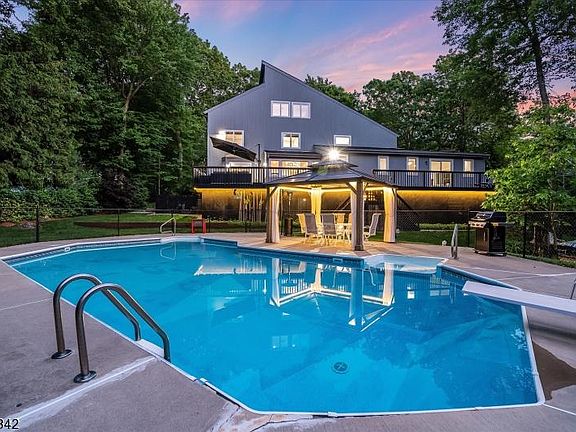 Welcome home to this beautiful and unique contemporary style home. Sitting on a quiet cul-de-sac street with nothing but privacy, peace + quiet, this home boasts 6 bedrooms, 4 full bathrooms + over 4300 sq feet of living space. Walking into the home, you automatically notice the size of the gorgeous windows which give that bright + airy feeling even on the darkest days. Brand new flooring, fresh paint + recess lighting throughout. The fully renovated kitchen with stone countertops + backsplash is a chef's dream equipped with a Wolf Induction cooktop, Jenn-Air double ovens with a third warming drawer. The formal living room boasts a renovated gas fireplace with marble + Italian tile mantle. With custom woodwork columns + built-ins, you will see no details were missed in this home's transformation. On the second floor you will find the master bedroom and three more bedrooms. On the third floor, you will find an additional large bedroom/loft area, whichever you prefer. Walking into the backyard you find your dream oasis. Large deck for entertaining, gazebo for shade or a fire + lounging... Lastly, a large heated in-ground swimming pool. The property backs up to park land which creates the utmost privacy. The fourth bathroom and a personal favorite is accessible from the outside swimming area. NEW ROOF, NEW 5 ZONE HEATING SYSTEM, NEW EXTERIOR DOORS AND WINDOWS, STANDBY GENERATOR, BRAND NEW 6 BEDROOM SEPTIC BEING INSTALLED.