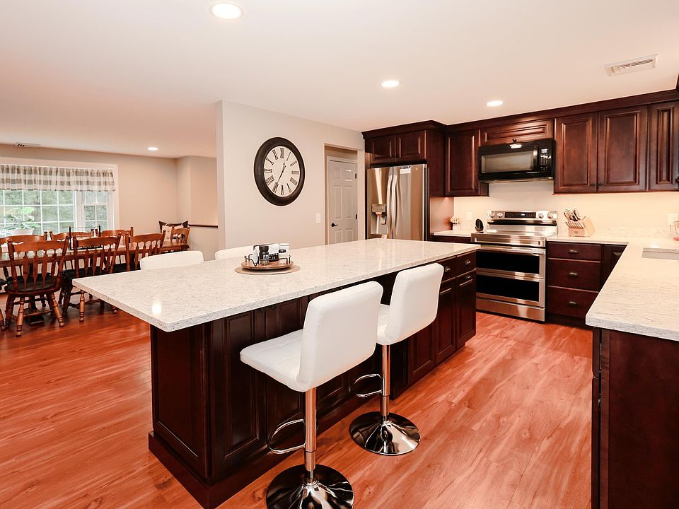 Welcome to this charming raised ranch in the quiet and conveniently located town of Litchfield, NH. This delightful home boasts 3 bedrooms and 1.5 baths a 2 car attached garage and a dream 3 car detached garage! Inside, you'll find an open concept living area with a cozy pellet stove connecting the living room, kitchen and dining area, creating a bright and welcoming atmosphere. Head down the hall to find the 3 bedrooms and full bath. The primary bedroom features an en-suite bathroom for added privacy. The recently updated kitchen is well-appointed with a central island, making meal preparation a breeze. The exterior of the home is equally impressive, featuring a brand new deck and gazebo ideal for outdoor gatherings and an expansive fully fenced yard! Other features include a newer metal roof and ondemand generator. The main attraction is the massive 3 car detached garage that is a mechanic's dream and includes a car lift and an entire second floor to make your own! Set in a peaceful subdivision, this home is situated on a quiet cul-de-sac with little traffic. It is also an ideal commuter location close to highways, amenities and the airport.