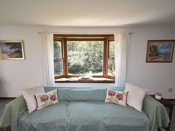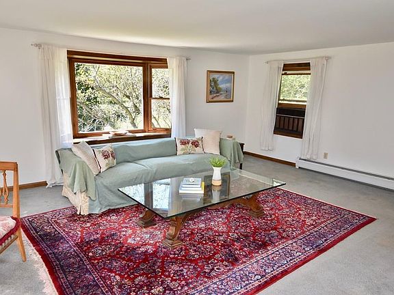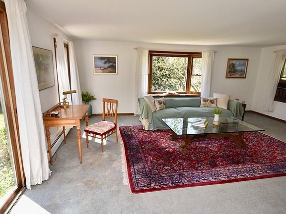 The sunlit home privately sited on a beautiful level lot with a grape arbor, blueberry bushes and fruit trees. Blue Meadow Road is a meandering road that leads to the Quabbin Reservoir for long fall walks but convenient to the center of town. The large living room is light and airy with a bay window and slider that makes it easy for large family gatherings and fun filled evenings. The large room also comes with a brand new wall to wall carpet. Also on the first floor is a large dining room off the kitchen, full bath and large bedroom. The second floor has two cozy bedrooms. The home has been freshly painted throughout and ready to move in. The quality of life is good in this home. Lots of storage available on second floor. Roof is 8 years young.