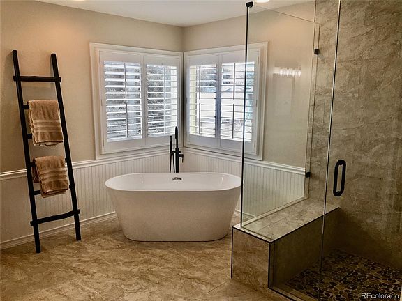 Immaculate 5 bedroom home in Ken Caryl Valley. This home is updated with an exquisite attention to detail throughout. The main floor features formal living and dining rooms, a cozy sun room, eat-in gourmet kitchen and a large family room with a custom stone fireplace. The upper level has a luxurious master suite and three additional spacious bedrooms. The lower level offers a great room with a gas fireplace, wet bar, 3/4 bath, study/optional bedroom, a workout room, and a massive amount of storage. Situated at the end of a quiet cul-de-sac with a professionally landscaped yard, wonderful flagstone patio and a custom stone fireplace. Central Air*Newer Renewal By Andersen Windows*Custom Shutters*Hardwood Floors*Oversized 3 Car Garage Wonderful Ken Caryl Amenities with pools, parks, trails and an equestrian center.