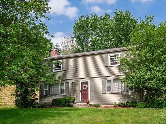 Charming 4 bedroom Colonial located at the end of the cul-de-sac. This ambient light filled home has brand new thermopane windows, gas heating and cooking, beautiful hardwood floors and nearly an acre of privacy. First floor features front to back living room with fireplace, formal dining room, kitchen with island & cut out, as well as half bath. Upstairs you'll find 4 bedrooms and full bath. Full basement for storage. The grounds are delightful and lovingly landscaped with patio and shed.
