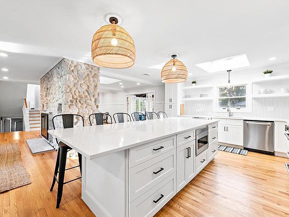 WINTER RENTAL - Just steps away from Monmouth Beach's quaint shopping, restaurants, bars, gym, yoga, salons, coffee shop, market, and parks, this fully furnished home gets your feet in the sand with a quick walk or bike to the beach in under 10 minutes. The interior boasts an open kitchen with large island, two dishwashers, an oversized refrigerator/freezer, a wet bar, large dining area, and beautiful double-sided gas fireplace restored from the home's original stonework. In addition to the spacious kitchen and dining area, you get a cozy living room, a large great room, garage storage, a partially finished basement and laundry room, five bedrooms and three full bathrooms. Oversized backyard, complete with deck and fire pit. Renter is responsible for utilities