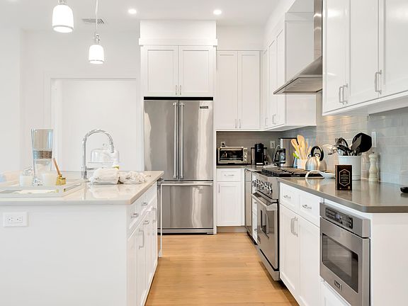 Soaring 9-foot ceilings and sun-drenched rooms greet you each day in this incredible 3 bedroom, 3 bathroom apartment that truly functions like a home. A 1,902 sf, open floor plan featuring a gourmet kitchen with top-of-the-line appliances, quartz/natural stone countertops, and island seating. A private balcony provides outdoor space with west-facing views. A luxurious master suite features walk-in closets and a spa-like marble bathroom with a double vanity and a walk-in shower. Additional luxury details include hardwood flooring throughout and a full-size washer and dryer. Built and professionally managed by Elk Homes, Colonial Court's amenities include a rooftop terrace with a BBQ with New York City skyline views, a fitness center, a pet spa, covered parking. Walk two blocks to the train, parks, library, and restaurants. Only 29 minutes by rail to New York City! Available August 5th. Photos shown are of this particular unit. Current tenant moving out July 31. Parking in our private garage is $175/car. Pets are $75/month. Amenity Fee is $75/month. Tenants pay own FIOS cable and gas, electric and water.