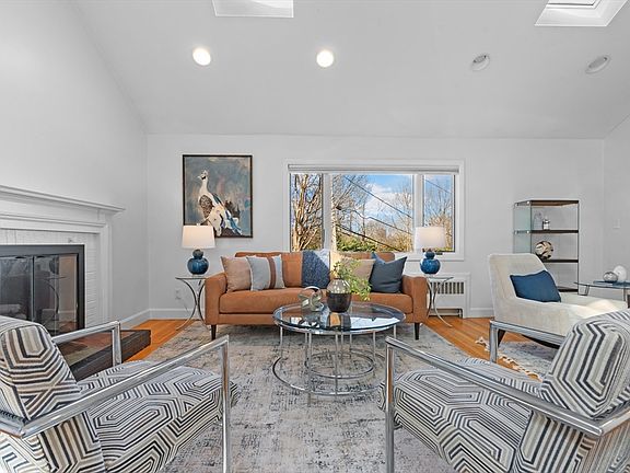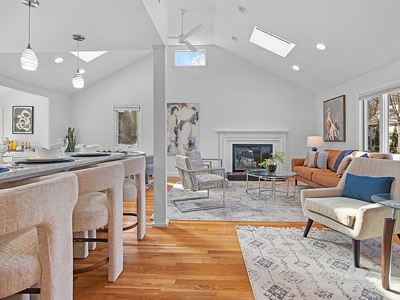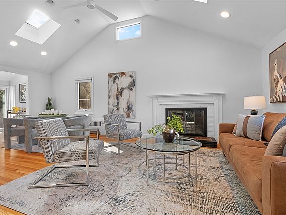 This beautiful Moss Hill home blends classic charm with thoughtful updates. The inviting living/dining room features a fireplace, cathedral ceilings, and several skylights, which create an airy, light-filled space. Recently renovated open floorplan kitchen with stainless steel appliances, quartz counters and convenient island/breakfast bar. Large dining space overlooks expansive fully fenced yard. Newly expanded primary suite offers soaring ceilings, more skylights, custom lighting, a walk-in closet, and sliders to the expansive outdoor space. The stunning en-suite bath showcases an oversized tiled shower, double vanity, and custom cabinetry. A second bedroom w/full dedicated bath and sunroom/office area add to the appeal. Lower level fireplaced family room, perfect as a third bedroom or au pair suite w/ additional full bath. With heated garage and great proximity to Centre St, Jamaica Pond, public transportation and Chestnut Hill shopping, this is Jamaica Plain living at its finest!