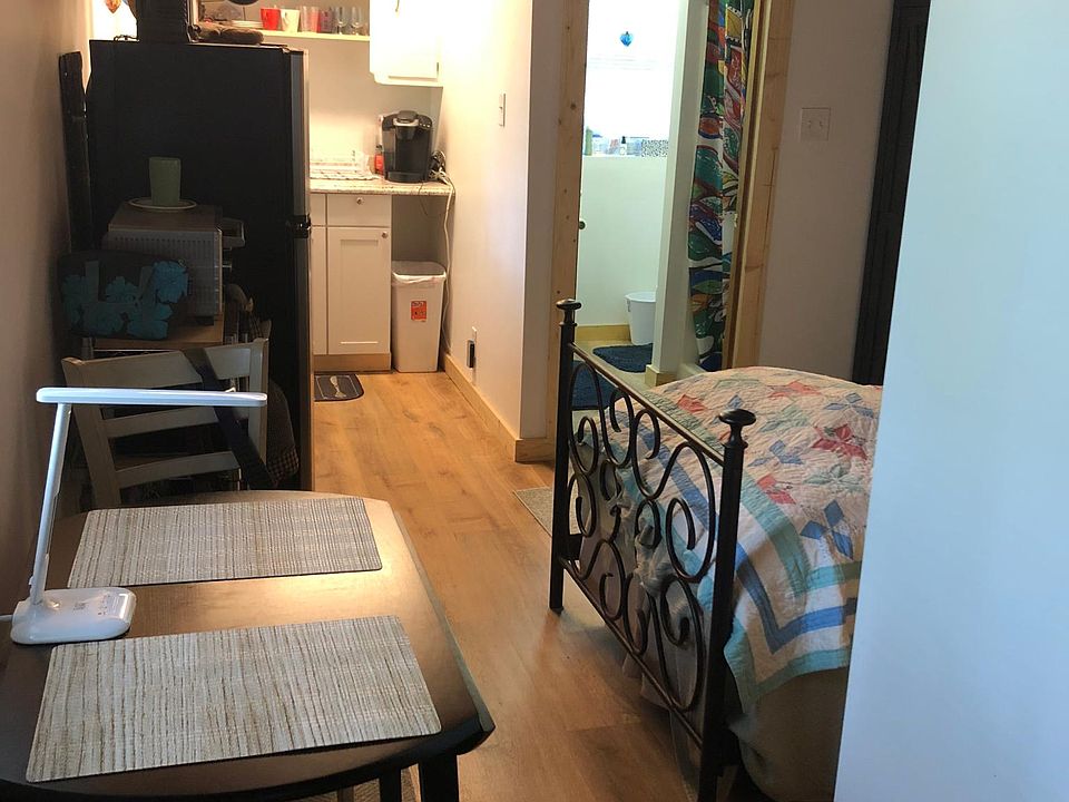 This one unit in a building that once was a religious lodge in Ridgecrest (Black Mountain) It was renovated a few years ago with new walls, floors and a Mini Split. The apartment consist of 2 rooms one living room and bedroom and a small kitchen and bathroom. It has its own entrance and Deck. All utilities are included in the rent, electric, gas, garbage and internet. years lease, references, back ground check and credit check . It is almost like a studio so best for one person 1 year all utilities included