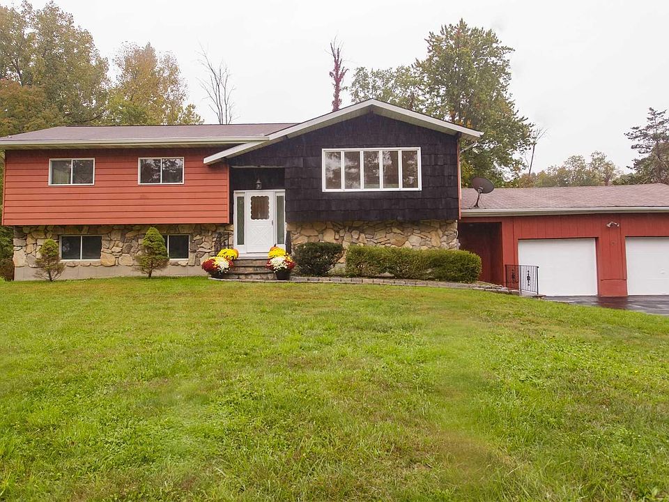 LOCATION!LOCATION! 3 Bedrooms 3 Bathrooms East Fishkill raised ranch on an acre of flat property in a quiet neighborhood.Beautiful stone walkway leads to the front door. A short flight of steps takes you up to a spacious living room and 3 bedrooms full of natural daylight.Kitchen has ample cabinets. Sliding glass doors open up from the kitchen to the deck ideal for gatherings or a quiet cuppa tea.Polished hardwood floors on first floor. Walkout Basement witha lot of potential is partially finished with a bathroom. Lots of storage.Extensive backyard surrounded by greenery and partially fenced. .Oversized 2 car garage and a shed.Minutes to I84 and Taconic. 15 minutes to Beacon Metro North train station. Close to town amenities and the iPark of East Fishkill booming with possibilities. Call for an appointment today and make it your own. Furnished rooms in the pictures are virtually staged. SHOWINGS START SUNDAY 10/9.,Cooling:Zoned,AboveGrade:1884,Unfinished Square Feet:684,Heating:Gas,Basement:Garage Access,Below Grnd Sq Feet:1284,APPLIANCES:Water Softener,ExteriorFeatures:Landscaped,Other School:ST COLUMBA,ROOF:Asphalt Shingles