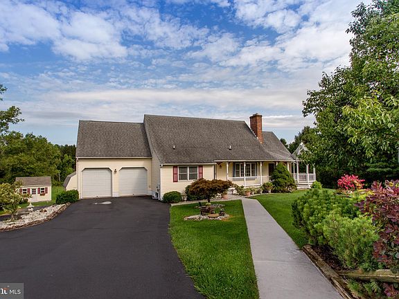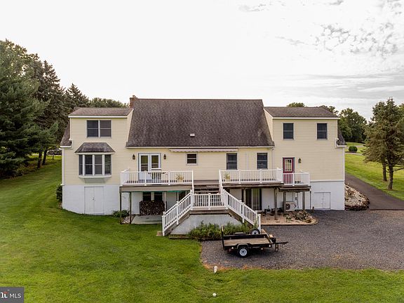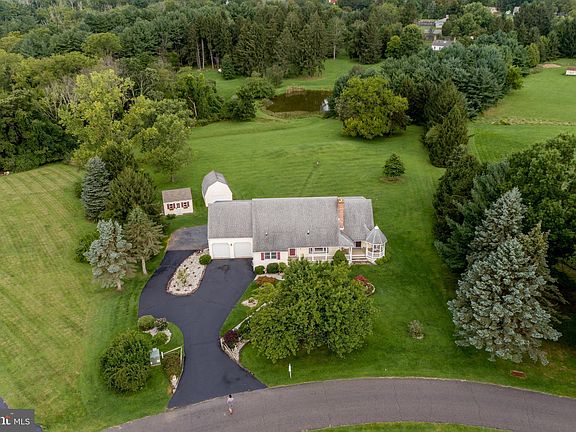 In the heart of scenic Tinicum Township, this 4-bedroom Cape Cod perches on two plus acres of mature trees and abundant landscaping, affording beautiful views. A wrap-around covered porch with charming gazebo provides an idyllic spot for breakfast as you watch the sunrise. Inside, three levels of spacious and light filled rooms create a home for both quiet evenings and entertaining a crowd. The living room, with a triple picture window, has a pellet stove with brick surround. The adjoining dining area has french doors leading to the gazebo. The crisp white kitchen features generous granite countertops, glass front cabinetry and a dining peninsula. The breakfast area has access to the low maintenance composite deck, perfect for al fresco dining. Two bedrooms and a renovated full bath complete the first floor. Upstairs, both bedrooms feature sitting rooms, abundant closet space, a shared bath and beautiful views of the surrounding countryside. An expansive rear deck with awning and double staircases overlooks a serene pond and is ideally positioned for watching the sun set. A patio on the lower level provides double french doors to the flexible indoor spaces. Here, a family area or home office has a wood burning stove. There is also a laundry, half-bath and a walkout flex space perfect for hobbies or workouts. Two additional storage areas add convenience. Two vinyl-sided outbuildings present more storage or workshop space. This private haven with its stunning views of nature will relax and inspire you. Less than two miles away the Delaware River awaits, including the opportunity for kayaking, canal paths for biking/walking. Nearby river towns provide shopping and antiquing, and commuting corridors provide access to Doylestown, Philadelphia and NYC.