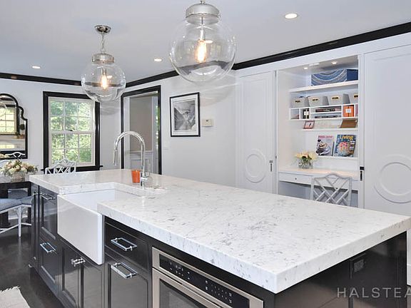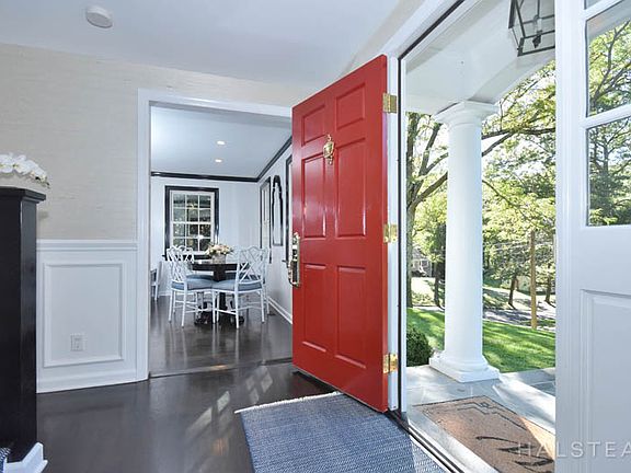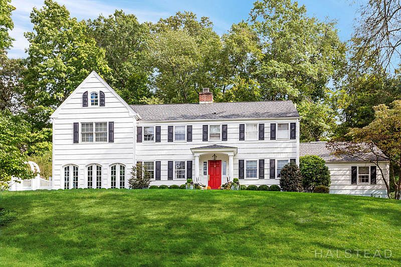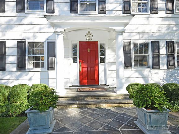 Picture perfect New England Colonial recently updated with quality, style and flair. Newly enlarged kitchen adjacent to dramatic family room with built-ins and fireplace. Formal Dining Room with fireplace and French Doors to private patio. Sleek Library with built-ins and full length arched windows. First floor en-suite guest room. Second floor Master with marble bath and huge walk-in closet. Jack and Jill bedrooms and bath, fifth bedroom with hall bath and laundry room all on second floor. Lower level playroom and media room with natural light conveniently located next to two-car attached garage. Lovely, private, fenced yard on a quiet cul-de-sac close to school, town and train. **Please note** Two finished rooms in lower level (over 700 sq ft) not included in square footage. Total over 4200 sq ft!