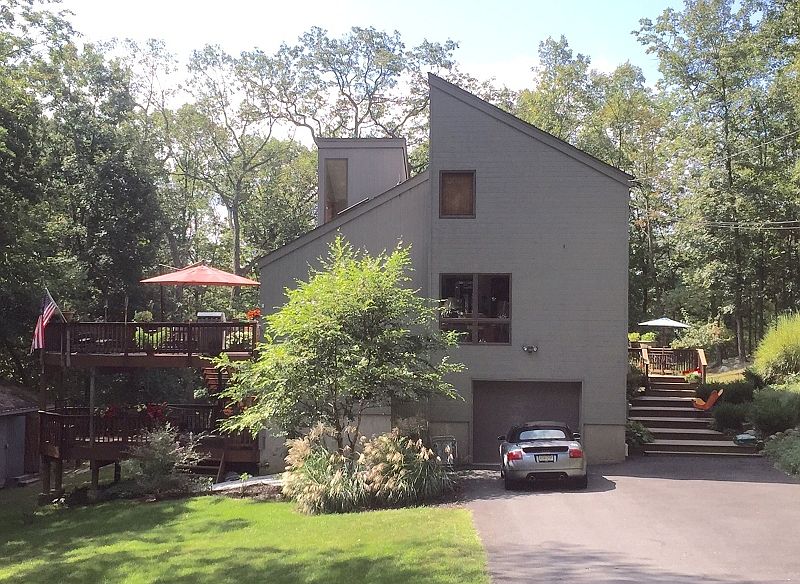 Warm custom home with forest & mountain views on a secluded lot. Optional Lake rights to Lk Lenape with swimming,kayacking and picnics,yet close to 206,15 and 80,for shopping & commuting. Located off 517 between Lk Lenape. & Perona Farms.Gleaming hardwood floors welcome you at the beautiful entry vestibule and continue throughout the home. Vaulted ceiling, skylites and numerous windows offer a light bright interior and brings nature from the private 2.3 acres at your door. Numerous decks from 2 levels enhance the entertainment space during spring, summer and fall. Two fireplaces and a spacious storage room plus outdoor shed adds additional room for your possessions. A cooks delight in the kitchen-with a 5 burner range-granite counters-stainless refrigerator & sink-plus tile backsplash.