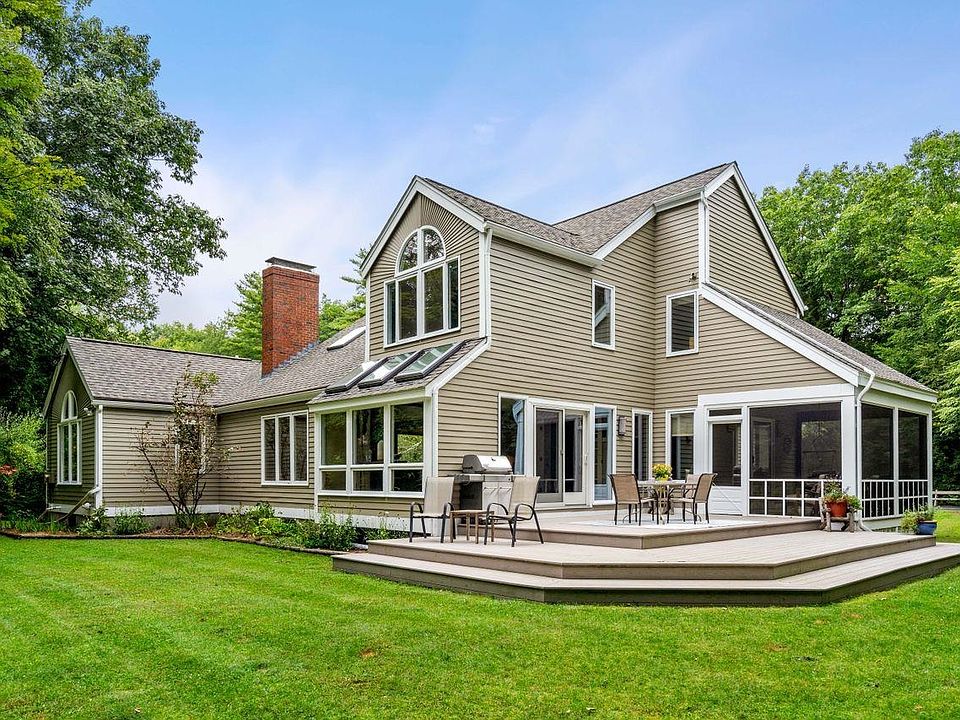 Welcome home to the amazing 8 Brick Mill Rd in Bedford, NH. This beautifully designed Acorn home seamlessly blends modern style with natural surroundings. Known for their energy efficiency and connection to nature, Acorn homes feature open floor plans, vaulted ceilings, and abundant natural light. This 4-bedroom, 3-bathroom property embodies these traits, offering comfort, functionality, and elegance.The main level boasts a primary bedroom with en-suite, ensuring convenience and ease. The spacious open kitchen flows into a lovely screened-in porch, perfect for outdoor dining or relaxation. The living areas are highlighted by vaulted ceilings and large windows that bring the outdoors in, while two fireplaces add warmth and charm. Upstairs, you'll find three generously sized bedrooms, sharing a full bath, ideal for you and guests. The home also offers a versatile basement with endless possibilities for additional living or recreational space. Situated in a desirable location, this home balances convenience and low-maintenance yard work, providing more time to enjoy its functional and stylish layout. Perfect for those seeking a peaceful retreat with easy access to amenities, this Acorn home is a standout in design and practicality.