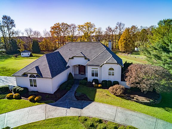 Fabulous, One-of-a-Kind, Custom Ranch Home in Prestigious Development, on Just Over 1.7 Acres, With an Amazing Full Finished Basement; Both Floors Provide 2500 SF Upstairs Plus an Additional 2,300 SF of Finished Rooms On Lower Level For a Grand Total of 4,800 SF; Only The Finest Materials Used When Building This Home Including All Tile Floors Were Laid in Wet Bed; This Sprawling Home Has 10ft Ceilings Throughout, Along With 14 ft Tray Ceilings in 3 Rooms, Pella Windows Throughout, Tins is Recessed Lighting and Maintenance Free Stucco Exterior; Drive Up To This Wonderful Home with its Impressive Curb Appeal, and Enter the Impeccable Circular Stamped Concrete Driveway and Walkway To the Front Door; Beautiful Transoms Door w/Stained Glass Windows; Spacious Foyer w/Marble Floor; Living/Dining Great Room w/Gorgeous Marble Surround Fireplace, Each W/14Ft Tray Ceilings and French Doors to Wraparound Deck; Gourmet's Delight Custom Kitchen with Tons of Custom Cabinetry, Granite Counters, Tile Backsplash, Island w/Breakfast Bar with Jennaire Cooktop, Porcelain Sink, Built-in Desk and Large Pantry; Library w/Built-in Custom Cherry Bookcase and French Doors To Deck; Second Door From Library To Spacious Master BR w/Tray Ceiling, His/Her Walk-in Closets, Tons of Natural Lighting and Double Door Entrance To Hall; Master Bath w/Tile Flrs, Granite Counter, Jacuzzi Tub, Clear Glass Oversized Shower and Separate Commode; Two Additional Bedrooms, Laundry Rm, Powder Rm and Jack/Jill Hall Bath Completes the 1st Floor; Oak Risers w/Chair ride, (Seller Will Remove if Not Wanted), To Finished Lower Level w/4 Rooms Plus Tons of Storage; RM1-Family Rm w/ Floor-to-Ceiling Stone Fireplace, large Window Well That Brings Lots of Light and Hall Bath: RM2-Pool Table Rm/Play Rm; RM3-Currently Used as a Workout Rm w/Sauna & Steam And Shower Could Be a BedRm; RM4-Hobby Rm; Roof 3 Years, AC 4Yrs; Heater, Septic & Well Serviced Regularly; A Must See;