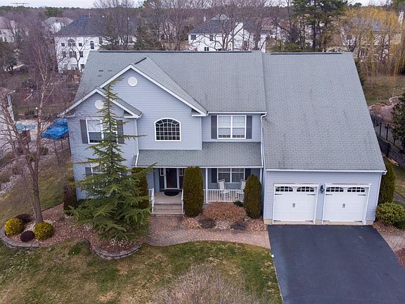 This Beautifully cared for home is located in the Majestic subdivision of Woods Edge. Enter into a two story foyer with new modern chandalier(with lift). Spacious Eat in Kitchen w/granite & Stainless steel, french doors to your own Bar. Formal dinning room, Light and airy two story living room. 5 Bedrooms 4 baths. Fully finished basement w/raised seat Movie Theater! Heated inground pool w/step in jaccuzzi and a pool house that doubles as an outside bar.Newer upgraded 75 gallon water heater. New upstairs HVAC. Newly painted,new garbage disposal,and garage door openers. New Porcelnosa tile upstairs baths and free standing shower.