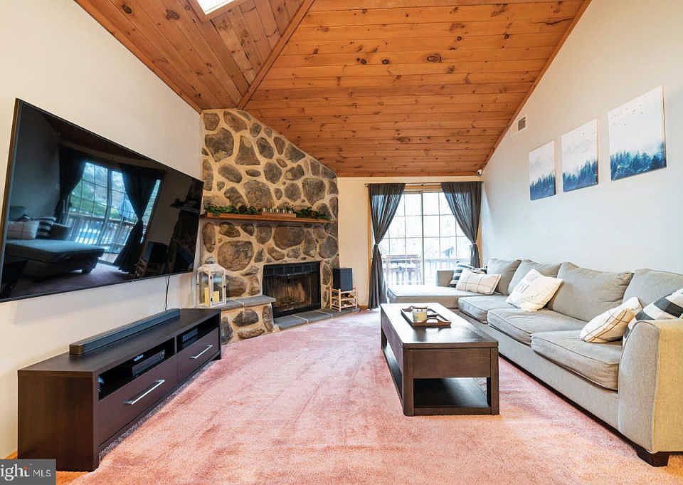 Finally what you have been waiting for! Welcome Home to this beautiful 2 bed, 1 bath second floor condo. As you enter you will be blown away by the vaulted pine ceilings in the living/ dining area. The living room features a nicely appointment floor to ceiling stone fireplace and sliding glass doors that lead out to your private deck. Back inside you'll find the open concept kitchen which has newly updated stainless steel appliances and a nice sized pantry. Down the hall is your updated, freshly painted bathroom with a new vanity, floating shelving and a brand new washer/dryer. Next you'll find a perfect room for a home office or second bedroom. At the end of the hall is a spacious main bedroom with a huge walk in closet! If that isn't enough this community is close to major highways, shopping areas and parks!