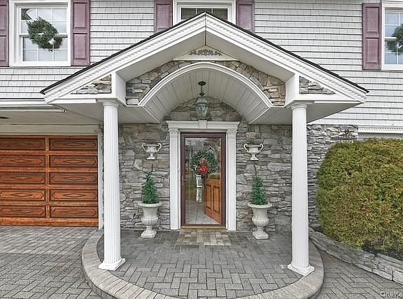 The exterior is truly a standout feature of the property. Highlights include a custom Nicolock paver driveway, walkways, and patio areas, an updated front façade with cultured stone and siding, and a beautifully maintained, park-like backyard designed for both relaxation and entertaining. Outdoor features include multiple patio spaces, a rear cultured stone chimney, a decorative waterfall with freshwater fish pond, mature plantings, and a custom 8 x 10 decorative storage shed, creating a private and serene setting.