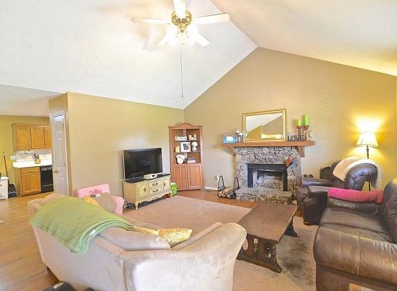 Double lot, two car garage and workshop, playset with slide and swings. Landscaped yard, front porch, back deck for cooking out. Wood fireplace in living room. Vaulted ceilings in living room. 3 beds 2 baths on main floor. Dual flush toliets, tile shower. Hardwood & tile floors. laundry closet in hallway. White countertops. Stained wood cabinets. Tile backsplash in kitchen/dining room combo. tons of storage. walkout basement partically finished. 2 rooms could be bedrooms with a large extra family room. Central Heat and air.