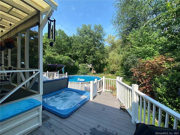 Welcome to 8 Burlington Drive! Located on a picturesque double cul-de-sac. This charming and well maintained 3/4 bedroom - 2 full bath Cape features a spacious living room, den, bedroom, full bath, and a large eat-in-kitchen with granite counter tops. French doors in the kitchen leads to an epic 380SF screened in porch- for an additional indoor/outdoor living space. Second floor has 3 bedrooms and a full bath. One of the bedrooms was split in two- easily converted back to make one full sized bedroom or keep for and extra office/flex space. Let's talk back yard!! Off the screened in porch is a trex deck with hot tub, above ground pool and well maintained lush private yard with mature plantings. This is a must see home! Highest and Best by 5pm 7/26/21.