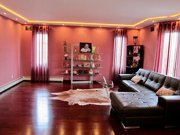 Unique and elegant upgraded prime Todt Hill home with award winning contemporary interior design. 1st floor: features a grand two story entry with panoramic windows and picturesque views. There is an elegant family room with illuminated soffit ceiling, a large dining room and connected oversized living room featuring a dramatic modern rare red granite fireplace. Both the dining room and living room feature french stretch ceilings that provide a unique reflective special effect. The kitchen features Italian wenge modern design, Viking double door refrigerator, Jen Air Oven and microwave unit and Frigidare dish washer. The floors on the first floor are hard wood cherry and Versace tile in the hall area and kitchen. There is an additional bedroom on the first floor and a 1/2 bath. 2nd Floor: Master bedroom featuring a dramatic raised French stretch ceiling, 2 walk in custom built closets spa-like master bathroom with oversized rainfall shower, separate jacuzzi and modern vanity. There are 3 other large bedrooms, one with a private 3/4 bath and a separate full bath. Basement features a large home theater/media room outfitted with a custom built speaker cabinets, full wiring, high end sound system, 3D projector, and bi-level movie theater with recliner seating for nine. Basement is fully finished with Italian tile and designed walls. Other features include a unique Chihuly Style chandelier, Venetian stucco wall design and many other unique upgrades. Country club front yard and back yard with circular driveway and Cambridge pavers throughout, large Grecian style in ground pool with automatic cover, outdoor hot tub and custom gazebo perfect for entertaining. Few blocks walking from Staten Island Academy - one of the top private schools. Near Green Zone hiking trails. Must see one of a kind home. NO BROKERS PLEASE. Top credit score and proof of income/employment history.