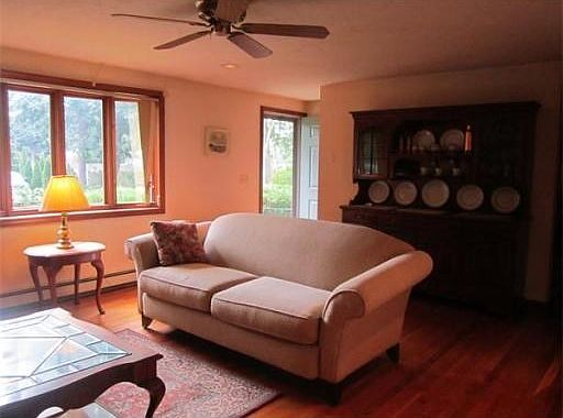 Spacious 2 bedroom ranch at end of little lane in West Yarmouth. L shaped dining/living room with fireplace and wood floors. Large year round sunroom with Cath ceiling, skylight and sliders to deck. Full walk out basement is partially finished.
