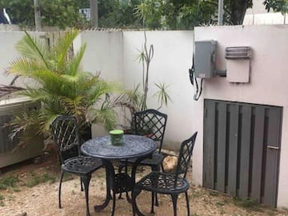 Two floors : with kitchen, dining , living room and full bathroom downstairs and bedroom with 2 queen beds , office area and second full bathroom upstairs. Outside patio area with BBQ available and in door parking. Walk out the door and walk 15 steps to the splendid ocean park beach. Enjoy the 2 mile stretch of this beautiful clean sandy beach. Uninterrupted electricity, water, and internet. Back up generator for the entire property along with water tank storage means no interruption during worst hurricane. Calle Pacific and Calle Atlantic have never flooded. Internet works if property has power so in the event of power outage the generator will keep internet on. Water and light included. 24/7 property generator cost included. Gigabit Internet Included. Totally animal friendly, with big backyard for room to run. Smoking only allowed on balcony or outside in the padio/backyard. Garage will fit one car.