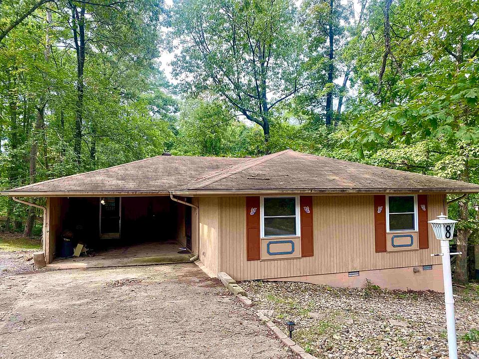 An Investor's Dream! Great one-level home in a cozy neighborhood close to Lake Cortez with 2 bedrooms and 2 baths. It ALSO has an ADDITIONAL LARGE ROOM not included in the square footage, and it adds an extra 344 sf to the home (see the diagram in photos.) There's a convenient small WORKSHOP with a sink and toilet right off the carport, plus a deck on the back facing lush private woods. You'll appreciate the flat driveway, and that the roof has already been inspected- and the shingles are in great shape! This home needs some TLC and will be sold "AS IS". Hot Springs Village offers plenty of nearby acitivites to this home...Pickleball Courts, a community outdoor pool, the DeSoto Golf Course, as well as Lake DeSoto and Lake Cortez for fishing and boating. All offers considered, see this one TODAY!