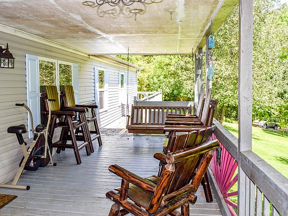 Wonderful, large manufactured home,nestled on a wooded hill. Private and beautiful setting. Approx 80' front porch, approx 30' side deck, approx 40' back deck. Central island kitchen w/ tile beveled edge, huge master suite, separate BD plan, wide plank wood look laminate floor, LED lighting, tilt windows, wood pellet stone, nice and clean!