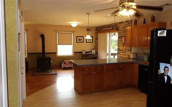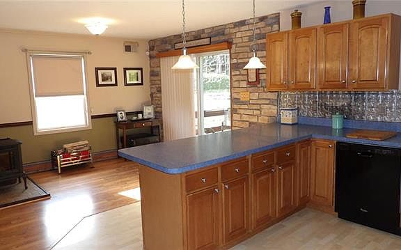 Nestled in the Pocono Mountains 4 bedroom 2.5 bathroom home, with a beautiful partially wooded lot. Relax outside on your covered porch as you watch the seasons change. During the cold months snuggle up to the woodstove in the living room to watch the snow fall. The oversized living room with an open floor plan to the kitchen make this the perfect for entertaining . The kitchen has a gas range and a newer dishwasher. This home has gas heat so you will not have the high electric bills. Central Air will keep you cool during the summer months. Do no miss out on this home, it will not last long. Plenty of parking and storage with long driveway, attached garage, and storage shed.