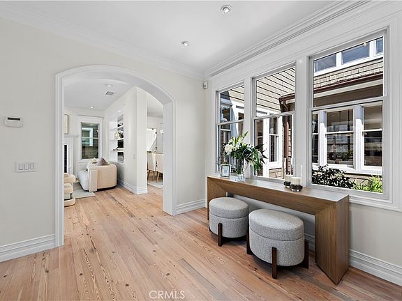 Nestled in the highly acclaimed, guard-gated community of Castaways, on the enclave’s most desirable cul-de-sac, 8 Cape Danbury effortlessly blends Cape Cod charm with luxury beach living. Recently refreshed, this expanded and meticulously maintained 4,519 +/- s.f. coastal residence features an eminently livable floor plan comprised of expansive living spaces, 4 ensuite bedrooms, main level home office and a stunning art studio. Step through a rustic Dutch door into an entry foyer where reclaimed pine wood floors exude warmth and set the stage for the home’s remarkable flow. Tall ceilings throughout the main level create open and bright rooms that connect with the outdoors through large windows and multiple sets of French doors. A formal living room centers around a cozy fireplace and connects with a quaint front porch surrounded by lush landscaping. The adjacent formal dining room opens to a central courtyard that connects to the impressive rear grounds. A renovated chef’s kitchen is the heart of the home with stunning Calacatta marble and soapstone countertops, custom cabinetry, oversized center island, a full suite of professional-grade appliances, and a sunny breakfast room with views of the courtyard. Epitomizing open-concept living, the kitchen adjoins the family room that features a stone-clad fireplace and separate seating area. The first floor is completed by a 1,400-bottle climate-controlled wine room, designer-appointed powder room, and spacious laundry room. Upstairs, an appealing bedroom configuration awaits starting with a sumptuous primary suite complete with a fireplace, built-in cabinetry, renovated bathroom, expansive custom closet, and a balcony that draws in coastal breezes. Three additional bedroom suites and the art studio complete the second floor. Outside, professionally designed grounds exude charm and privacy and offer incredible entertaining amenities, including a renovated pool and spa with water features, gas fire pit, built-in BBQ and cooktop, wood-burning pizza oven, and separate chef’s pantry with built-in refrigerator. A 2-car garage with epoxy floors and built-in cabinetry completes this exemplary home. Set in a prime location within blocks of outdoor adventures, enjoy surf and sand, kayaking, paddleboarding & fishing, and access to scenic trails with breathtaking blufftop vistas of the bay and ocean. This exceptional locale is just minutes from Balboa Island, beaches, Fashion Island, John Wayne airport and more.
