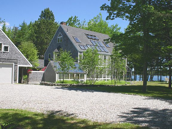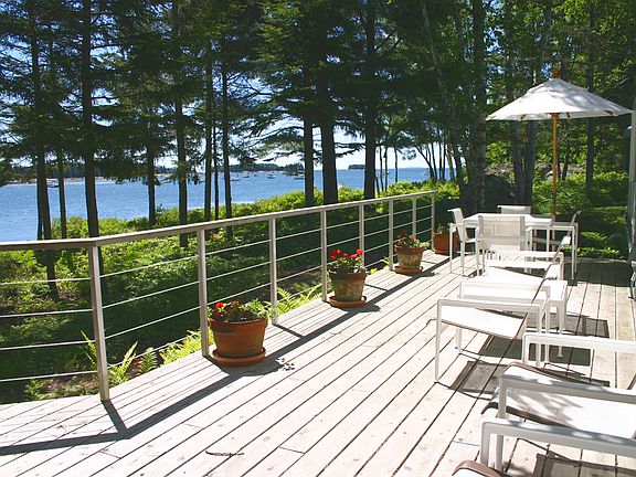 Private contemporary 4-bedroom home enjoys lovely views of Wheeler Bay and its working harbor. The house features sun-drenched spacious rooms w/ custom woodworking and includes 310' +/- of shorefront with a sand beach and deepwater mooring.