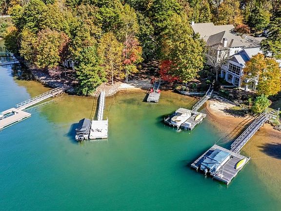 Located in Spinnaker Cove, a Keowee Key community, this is a distinctly beautiful custom built waterfront home with shared sandy beach and a platform dock. Open the front doors from the covered front porch that is easily accessed from the flat driveway, and you will be wowed. The architectural elements really enhance the beauty of this home. The ceiling heights in the home are 10 and 12 feet high. The foyer is flanked by the formal dining room with tray ceiling and custom lighting to the left and an office to its right with the powder room. As you continue, you will enter the circular foyer with the high ceilings and railings that lead to the lower level as well to the heart of the home which is the kitchen and casual dining area completely open to the Great Room. We stress that it is a Great Room. The fireplace anchors these rooms, yet the entire view of the lake is through floor-to-ceiling windows. The scraped hardwood floors still look new. Built-in bookcases create a wide hall leading to a reading area that opens to the covered porch facing Lake Keowee. The Master bedroom and Master Bath Suite is indeed a haven. A two-sided fireplace benefits both rooms. The bathroom has a steam shower and master custom closets are large, spacious, clean, and well appointed. The main level is all you need because there is a second Master Bedroom suite as well as the office. It is rare to have two full baths and two Master suites on the main level. The stunning kitchen features new GE Monogram appliances: double ovens including a convection oven, warming drawer, granite counters with the Ogee edging, pot filler at the induction cooktop, prep sink, refrigerator, and wine fridge. You will enjoy both the large pantry and beautiful laundry room The lower level features two additional bedrooms and two full baths plus a recreation room with wet bar that opens to a patio leading to your platform dock. There is also a media room. This home features hardwood floors, tile, and carpet. You will notice the foam insulation as well. Every room has surround sound. Not wanting to leave any of the features out, this is a four bedroom, four full baths, and powder room. Tremendous storage awaits you! This is one of the most beautiful homes currently for sale on Lake Keowee. You will discover that this is an incredible offering at the asking price. The home has approximately 4080 sq. ft. and the builder was Tom Hudson. Easy living, easy access in and out of the community, and experiencing the warmth of the Spinnaker Cove section of Keowee Key will be the start of your new life!
