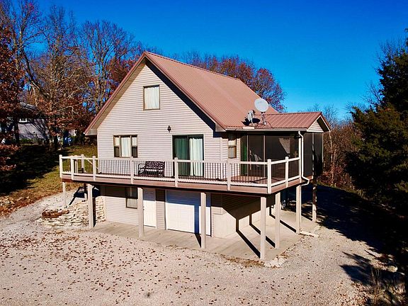 Stockton Lake views don't get much better than this! Enjoy amazing unobstructed lake views from the large wrap-around, all composite deck or the attached screened in porch. Venture inside to find a finished walk-out basement and cabin-like main level with loft. There is ample space for family and friends, too. The main level hosts one bedroom, the loft can be easily furnished with four twin beds, and the basement can accommodate one or more beds as well. There is a spacious full bath on the main level complete with a brand new shower and a soaker tub. The basement has the additional full bath and attached garage. The carpet and flooring are new throughout, PEX plumbing was installed with water shut-offs, and the front and garage doors are new. The septic system is a high-efficiency tank that doesn't require lateral fields. Step outside and grab your lake toys from the detached 20x24 shop/garage with lean-to and head to the lake. All this is nestled in Three Hills Subdivision which includes community well, boat ramp and lake access. If you're looking for a lake home or even a full-time place, come take a look at this one!