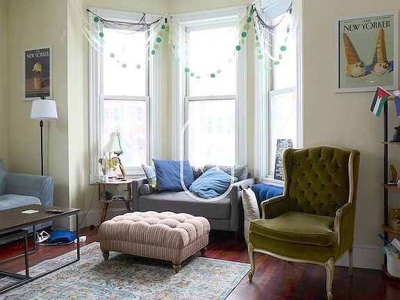 Four bedrooms with ample closet space Two full bathrooms Enormous living area Large eat-in kitchen Stainless appliances Gas stove and dishwasher Amazing sunlight throughout unit Beautiful hardwood floors Central AC Private balcony off kitchen Laundry in building Off street parking available for rent Steps to Milkweed and other eateries Stop & Shop, Walgreens close Green Line and Orange Line accessible Convenient to Northeastern, Fenway Colleges