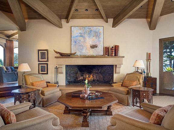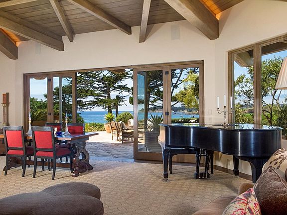 Located on Carmel's most private cul-de-sac, this Mediterranean style home boasts some of the most impressive ocean and golf course views in all of Carmel-by-the-Sea. Thoughtfully designed indoor and outdoor living spaces create an effortless flow between the interior rooms and outdoor patios. The home features a large great room, gourmet kitchen, 4 en-suite bedrooms, landscaped grounds with BBQ area, outdoor fireplace and hot tub. Carmel Beach and downtown Carmel are walking distance via a private path.