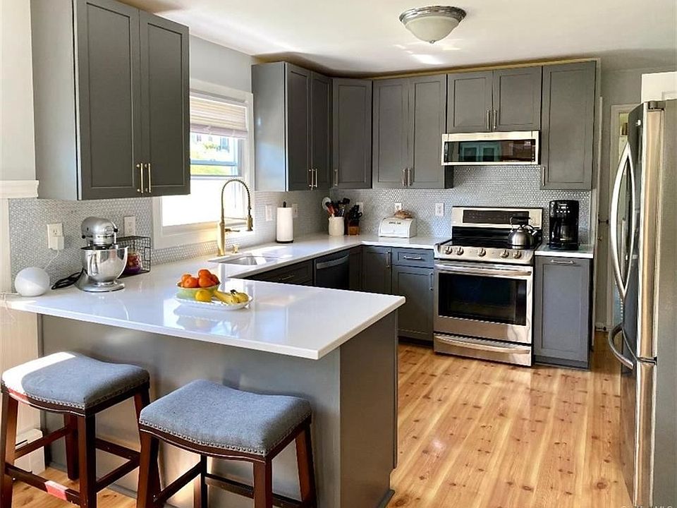 Beautiful farmhouse style home with nothing to do but move in! Gorgeous new kitchen with quartz countertops, breakfast bar peninsula island and stainless appliances. Addition offers a finished loft area that could easily be modified into a third bedroom. Spacious living room, home office or sunroom on main floor with lots of light! Newer flooring throughout, vaulted ceilings, french doors, huge primary bedroom, large bathroom with jetted tub and separate shower. Enjoy the fabulous wraparound deck during those summer nights and the above ground pool and large backyard. Walkout basement, new furnace and hot water heater. Lots of storage space throughout. Tandem garage could accommodate two cars. Cul-de-sac location convenient to hospitals, shopping, colleges. So many updates, this Spackenkill charmer is truly a pleasure to show!!