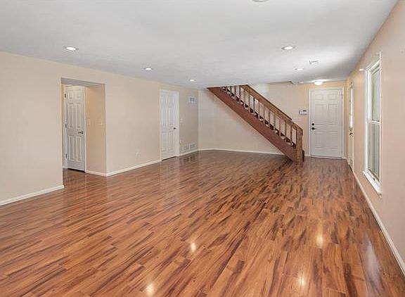 Stop...this is the house for you!!! 5 large bedrooms and 3 full baths with a tree-lined back yard providing great privacy. The main level features Brazilian cherry floors in Great Rm and Dining Rm and 4 bedrooms. There is a separate dining rm and the large kitchen has an abundance of cabinets, granite countertops, tile floor, and a separate light-filled breakfast room. The bedroom wing has a huge master suite with walk-in closet and a luxury bath with double bowl vanity, separate shower and whirlpool tub. There are 3 additional bedrooms on the main floor, another full bath, and a large MAIN FLOOR laundry room with appliances that stay. The professionally finished walkout lower level has a family room with fireplace, a bedroom and a full bath. Large deck and patio area with just installed cozy fire pit also fenced and nearly maintenance free back yard. Roof & gutter guards replaced in May 2017. Great location!