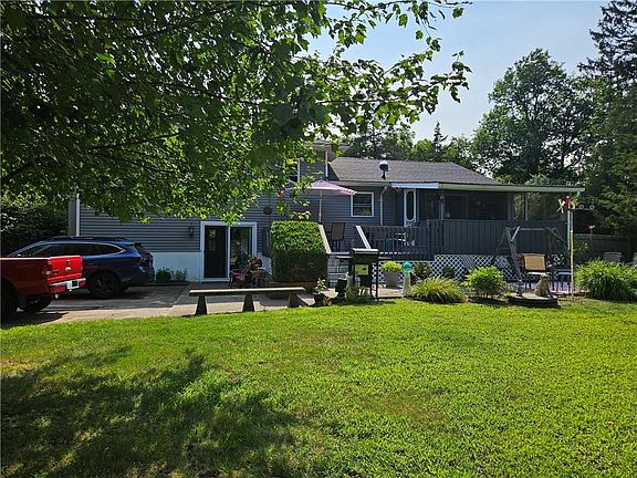 This immaculate split level will welcome you home. This 3 level split has 3 floors of living area plus a full basement. All applianced kitchen with a dining area that opens up to a 3 season sunporch to extend your favorite activities. Living room has a gas fireplace and looks over a beautiful flower farm. 3 Bedrooms and the master has a convenient half bath. The family room in the lower level is the place to be with woodstove and built ins great room to hang year round. dry, heated basement accommodates a workshop for sure. Washer and Dryer included. This home has a lovely patio area for outdoor furniture. The 1.03 acres is fenced in for perfect privacy. Corner lot with beautiful perennials; lilacs, forsythia, rhododendrons, a fenced in garden and aprox 1/3 of fun walking trails in the shade. To boot there is a 16' X 16 ' feet Out building /shed with a loft and one more 10' x 8' shed. Country at its best.