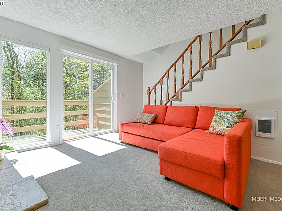 Perched on a wooded bluff in Lake Oswego's sought after Mountain Park neighborhood, this charming townhome offers so much value! Featuring fresh carpeting & paint, vinyl windows, blinds, lighting fixtures, garbage disposal, H2O tank & zonal heaters. New rear balcony door opens to a naturally tranquil view. Deeded garage included too. Combined HOA dues include water, sewer, garbage, commons maintenance + provide access to recreation facilities, fitness gym, tennis, basketball, swimming and more!