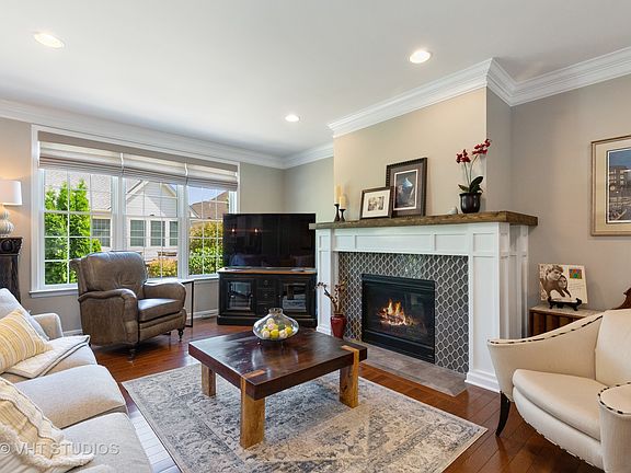 Light filled ranch home in Regency at The Woods of South Barrington on a peaceful interior lot. Open Ivanhoe plan built in 2013 looks brand new inside and out! Current owners added high-end custom window treatments, beautifully landscaped brick paver patio with two separate entertaining areas,privacy landscaping, custom built fireplace surround and mantle, new light fixtures and so much more! The bright kitchen has 42" cabinets, new subway tile back-splash and under cabinet lighting, walk-in pantry & miles of granite counters with island. Upgraded stainless Kitchen-Aid appliances include French door refrigerator, double ovens, microwave & 5-burner gas cooktop. Split bedroom plan allows for privacy when hosting guests. Spacious owner's retreat has a high tray ceiling, custom Hunter Douglas bottom-up top-down shades in sheer & blackout style and His/Her closets with custom organizers. The spa-like ensuite bath has deep soaker tub, walk-in shower with seat & frameless shower door, separate water closet, & Euro-height double vanity. On the opposite side of the home is a guest bedroom with huge walk-in closet and ensuite bath. Open light-filled floor plan from kitchen to dining to family room sets the mood for anything from entertaining groups to intimate dinners with soft music wafting from the built-in speakers. Flexible space for formal dining room, office, or sitting room is located at the front of the home. Custom white millwork. Separate powder room. Full, unfinished basement with 9' ceiling is insulated and plumbed for a bath. Minutes walk to the clubhouse with pool, tennis, exercise facility, clubhouse and more. Meet neighbors to play cards or a share a bottle of wine and appetizers in the various gathering spaces. Reserve a room to host a bridal or baby shower (also perfect for a huge family Thanksgiving or Christmas dinner!) Similarly, this neighborhood is only a short walk or drive to all of the Shopping/Dining available at The Arboretum of South Barrington. Easy access to I-90 and O'Hare! Secure, gated 50+ maintenance free community makes worry free extended travel a reality. This home truly looks brand new with over $70k of recent updates and improvements. Welcome home!
