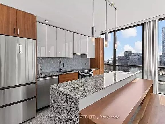Welcome to this stunning, sun-filled corner unit tucked away on a quiet street in vibrant King West. Recently renovated and surrounded by windows, this suite is bathed in natural light throughout the day. Enjoy breathtaking southwest views featuring unforgettable sunsets, the lake, the CN Tower, and Rogers Centre. Thoughtfully designed with an excellent split-bedroom floor plan, this spacious suite offers abundant storage and a custom kitchen perfect for entertaining. Located in a well-managed building with a friendly concierge, outdoor pool, fitness centre, and more this is downtown living at it's best.