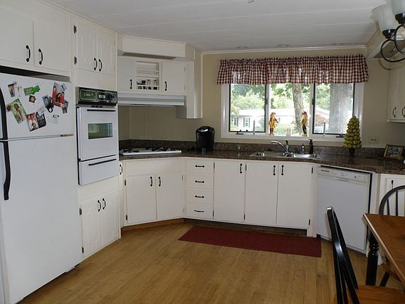 Lovely, updated single wide unit in Leisurewoods a 55+ community Hometown America park. Spacious and bright eat-in kitchen with a great amount of cabinet and counter space. Kitchen with white cabinets, newer appliances including wall oven, gas cooktop, hood and dishwasher makes it a pleasure to work in. Beautiful wood flooring in kitchen and living room. Spacious bath with soaking tub, shower stall and skylight making it bright and pleasant. Large bedroom with double closet.