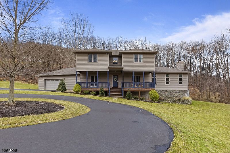 Spectacular one of a kind 2003 built home on over 4.5 peaceful acres and rocking chair front porch! Step inside & be greeted by a large gourmet kitchen with island, breakfast bar, walk in pantry and inviting 3 season room overlooking the beautiful back yard. Open to the kitchen is a wet bar and large family room with wood burning fireplace and custom windows which leads out to a large deck. Upstairs you will find a true master bedroom suite consisting of a sitting room with gas fireplace, extra-large walk in closet and beautifully appointed master bath. Along with a princess suite and two other generous bedrooms. Add to that the walk out basement with sauna and hot tub, easy access to highways, shopping and schools and you have the perfect home! Sought after Raritan Township (Flemington) schools!