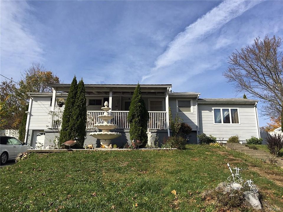 Raised ranch offers three bedrooms, living room, modern kitchen with tiled floors, new cabinets and granite counter tops, an island with space for breakfast. There is a formal dining room and a three seasons porch next to it, hardwood floors as seen in the first level too. There's sliders to the covered deck overlooking a fenced in yard. More space can be seen in the lower walk out level, a bathroom, wet bar and a area for recreation that needs some tlc. The one car garage is spacious and offers storage space. The beautiful front porch with sitting area is very welcoming and has seasonal mountain views. The front porch has additional storage space underneath. The driveway has space for the parking of about six cars. Very convenient location at a short driving distance to shopping, recreation, restaurants, commuter areas such as the Newburgh-Beacon Ferry, Beacon train station and the Newburgh Bus Terminal. In the middle point of Albany, Hartford and NYC, Come view this HOME!!