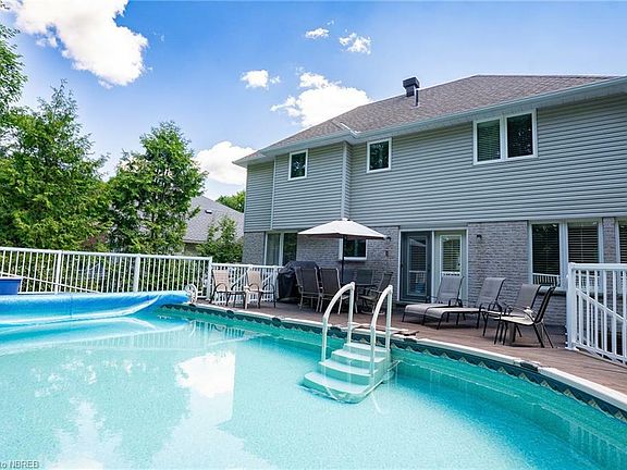 Welcome to gracious living in an executive 2 story home custom built for these original owners. Located at the top of Airport Hill on a quiet cul-de-sac with amazing curb appeal. The entrance has a welcoming foyer with an elegant curved oak staircase. Off the front foyer is a set of French doors leading to a formal living room then to a dining room with pocket doors to the dining room and kitchen. The kitchen boasts high end stainless steel appliances with built in double wall oven, gas stove top, also a gas BBQ hookup plus many more features including a built in bar fridge in kitchen all finished with granite counter tops. Lets not forget the double terrace doors leading to a 15 ft by 30 ft salt water above ground pool wrapped in decking. The back yard is private when entertaining your guests for afternoon swimming and BBQ's. The 2nd level has 3 bedrooms with hardwood floors throughout plus a 3 piece main bath. The primary bedroom includes a walk in closet, 4 piece bath finished with glass shower and porcelain floors. Laundry facilities are located on the main floor just off access to the double car garage. Basement is completely finished with a large games / recreation room with a gas fireplace. The property is professionally landscaped, pool if fully fenced with privacy cedars around the back yard. Many more features to list. Further information available.