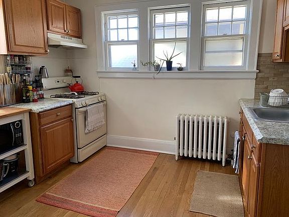 Freshly painted like new! Walking distance to train. Lovely neighborhood. Parking in driveway and garage! Tenant responsible for electric and gas stove. Landlord pays heat and hot water.