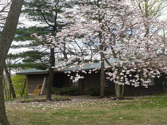 CHARMING RANCHER ON A PRIVATE 1.87 ACRE LOT half grass half woods, beautifully redesigned roof structure with 3 gable ends and hipped roof over kitchen, FRESHLY PAINTED, NEW CARPET, REMODELED BATHS, TILE IN FOYER, 2 ZONE HEAT, NEW STAINLESS STEEL APPLAINCES, LIVING ROOM pellets stove , FLAGSTONE PATIOS. Both driveways repaved, & a large workshop/garage with carport outback.